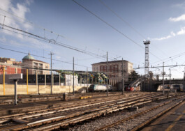 Blooming – the large a Triptych Fresco embedded at the Wing wall’s exterior, the view from the outside world, from the street people walk along, the exterior view of the Bologna Memorial Square from the street Via Matteotti, and its bridge part, above the railways tracks.